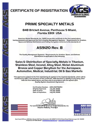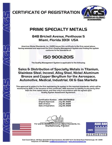 PSM is ISO 9001 and AS9210 certified, ensuring quality in specialty metal distribution.